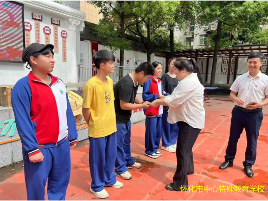 隨后,活動(dòng)走進(jìn)懷化市中心特殊教育學(xué)校。開(kāi)展了“逐夢(mèng)大學(xué)”助學(xué)金慰問(wèn)及學(xué)習用品捐贈儀式,同時(shí)給五名高三畢業(yè)生進(jìn)行助學(xué)金慰問(wèn),給特殊學(xué)校的學(xué)生們送上嶄新的學(xué)習用品。大家用耐心和熱情傳遞關(guān)愛(ài),并與師生親切互動(dòng),市城建投全體人員請特校老師教會(huì )他們“加油”的手語(yǔ)表達,學(xué)會(huì )后,大家一起向學(xué)生們比出了“加油”的手語(yǔ),鼓勵他們充滿(mǎn)信心、堅定自信。老師們對市城建投的暖心之舉表達感謝:“這份關(guān)懷不僅為孩子們提供了物質(zhì)支持,更讓他們感受到社會(huì )的溫暖與尊重?!?/p>