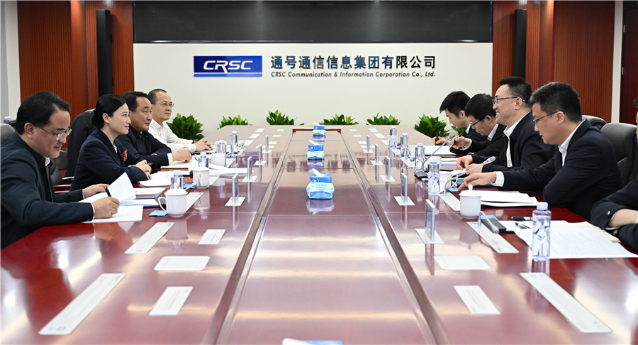 (2月28日、3月3日,市委副書(shū)記、市長(zhǎng)韋朝暉帶隊(duì)赴國(guó)家有關(guān)部委匯報(bào)對(duì)接工作并在京招商考察。圖為3月3日,韋朝暉在通號(hào)通信信息集團(tuán)有限公司座談交流。懷化日?qǐng)?bào)全媒體記者 吳濤 攝)