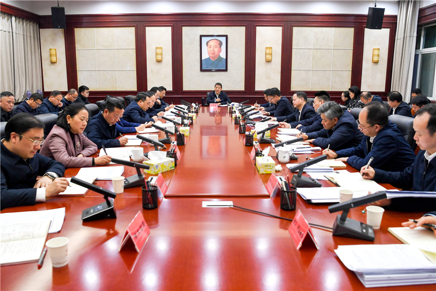 (2月6日下午,市委書記許忠建主持召開全市產(chǎn)業(yè)體系建設和招商引資重點簽約項目進展調度會。懷化日報全媒體記者 楊智偉 攝)