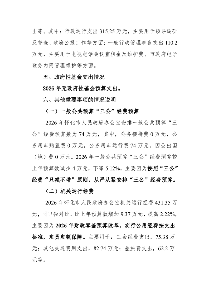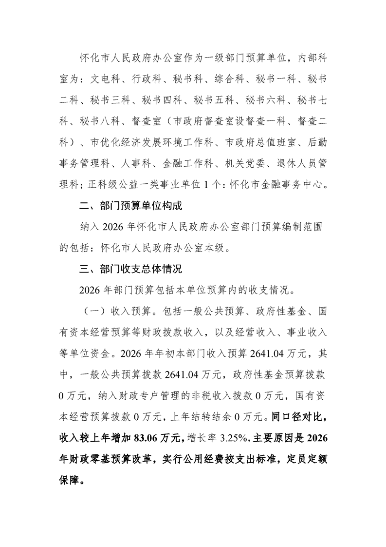 2026年度懷化市人民政府辦公室部門預(yù)算公開說明