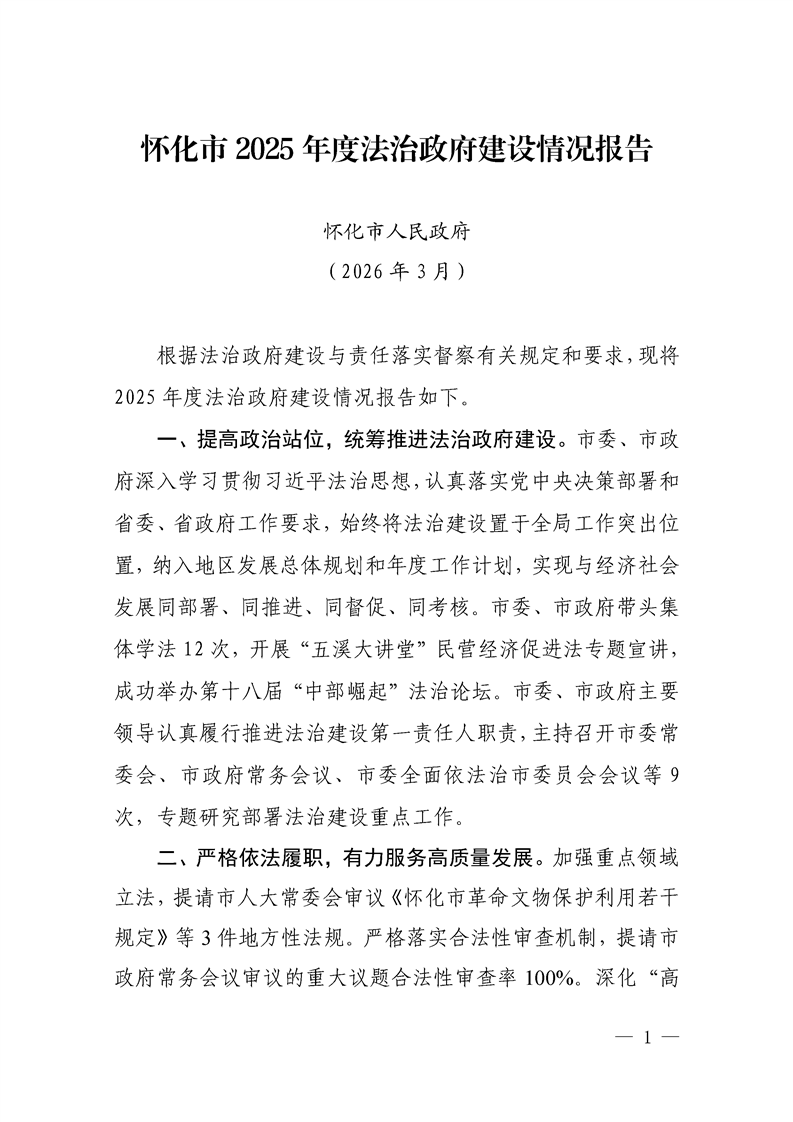 懷化市2025年度法治政府建設(shè)情況報(bào)告