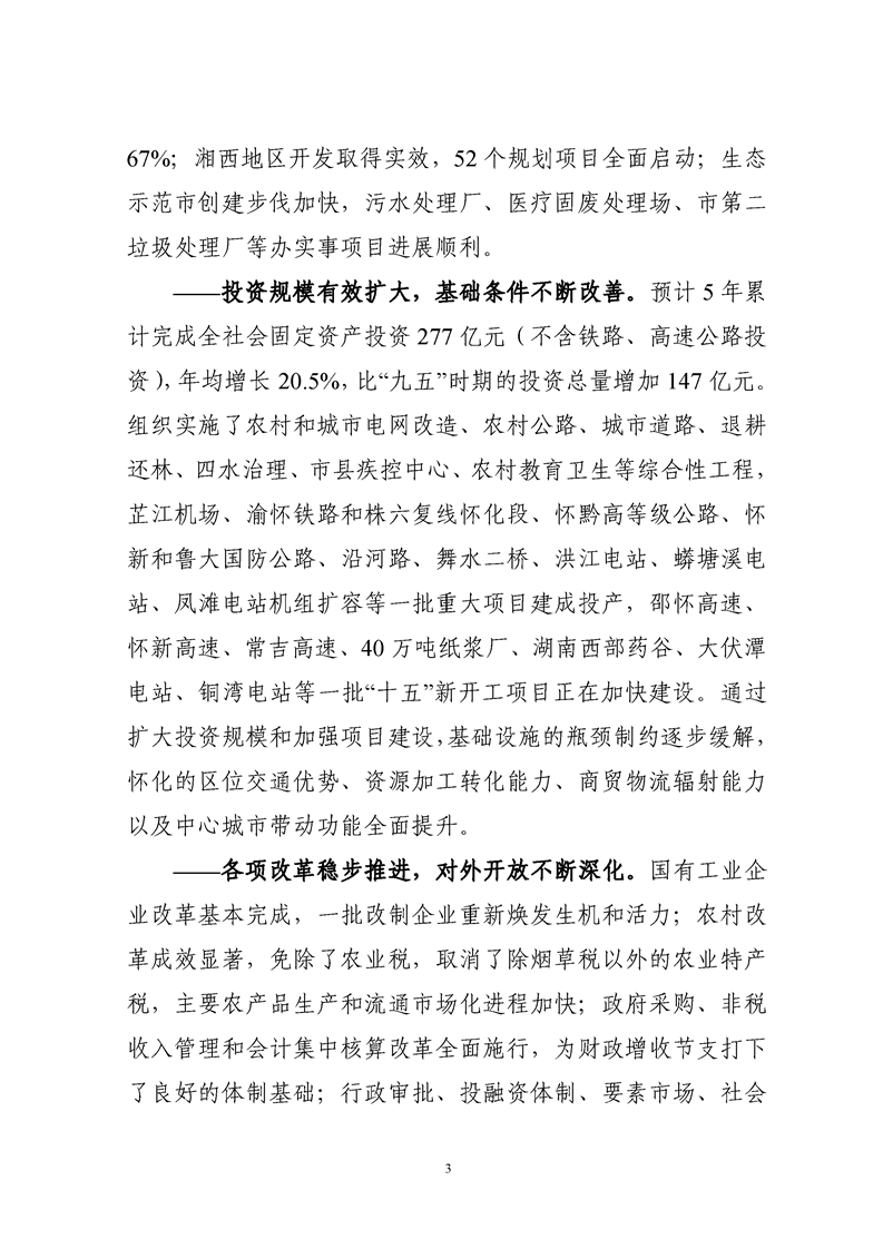 懷化市“十一五”規(guī)劃綱要