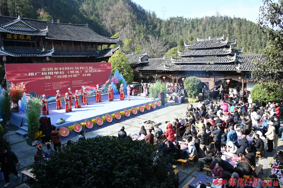 (2024年全國鄉(xiāng)村網(wǎng)紅培育計劃推廣應(yīng)用單位(懷化)示范活動暨“亮嗓對歌”村晚活動現(xiàn)場)