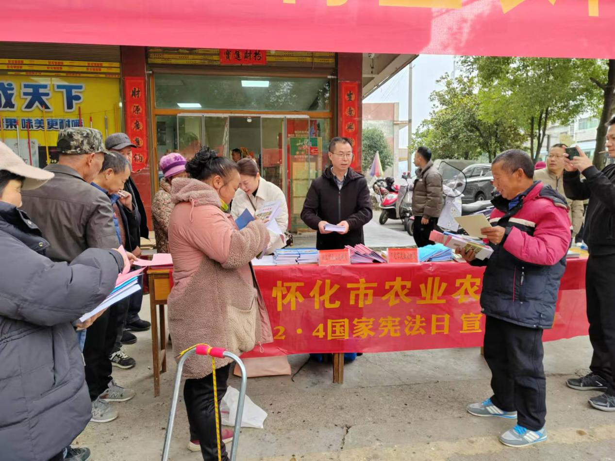 秋色宜人,法潤?quán)l(xiāng)村。為大力弘揚(yáng)憲法精神,扎實(shí)推進(jìn)法治鄉(xiāng)村建設(shè),12月5日,懷化市農(nóng)業(yè)農(nóng)村局聯(lián)合洪江市農(nóng)業(yè)農(nóng)村局在洪江市黔城鎮(zhèn)開展了“推動(dòng)憲法宣傳進(jìn)鄉(xiāng)村 法治意識(shí)入民心”為主題國家憲法日宣傳活動(dòng)暨政務(wù)公開主題日活動(dòng)。